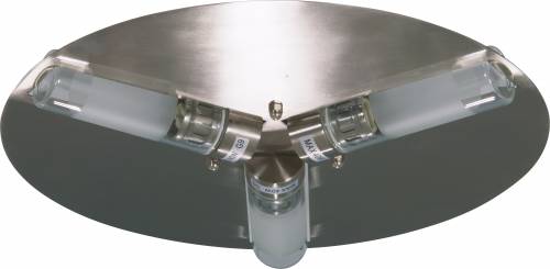 Satin Chrome Bathroom Ceiling Light IP44 Decorative triple ceiling light finished in satin chrome with glass shades.Requires 3x40W G9 halogen lamps (97019)